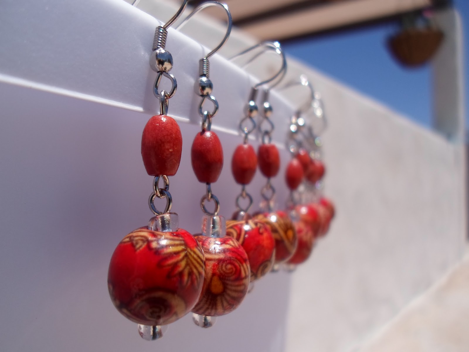 Fast forward some five or so years, and here I am, using those same wood beads to assemble earrings. I thought all the red beads had the same design, a golden swirl design that looks like a Chinese dragon.